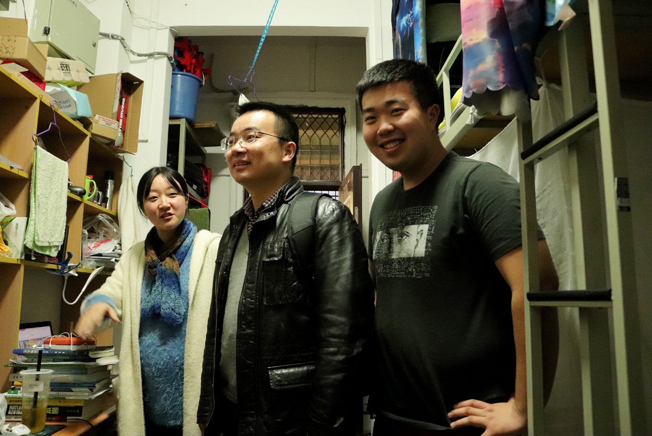 座谈会结束后,陈勇还前往城轨电气系2017级宿舍区(三板)看望同学们。在寝室里,他询问了同学们的生活情况,关注寝室卫生和学习氛围,叮嘱同学们注意用电安全及财物安全。在查寝过程中,有些学生寝室物品摆放有序,地面整洁干净,学习氛围浓郁,陈勇和辅导员们感到欣慰。陈勇与同学们交流时指出,寝室是同学们共同营造的生活园区,只有一起用心维护、打理,才能让同学们拥有更好的生活和学习环境。在“三板”3430和3429寝室,陈勇看到有同学在寝室练习毛笔字、弹吉他,也兴致勃勃地与同学们聊起了全面发展的问题。一直到寝室即将熄灯时,陈勇和三位辅导员才与同学们道别。