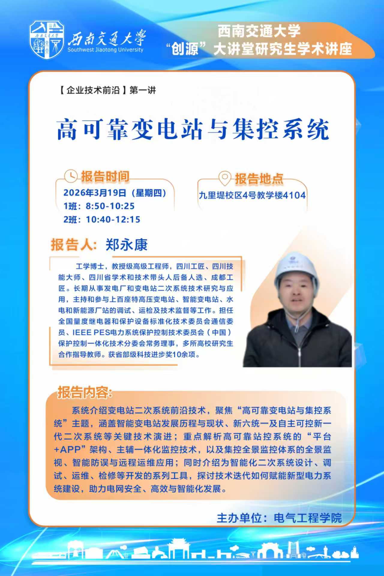 3月19日“创源”大讲堂:高可靠变电站与集控系统