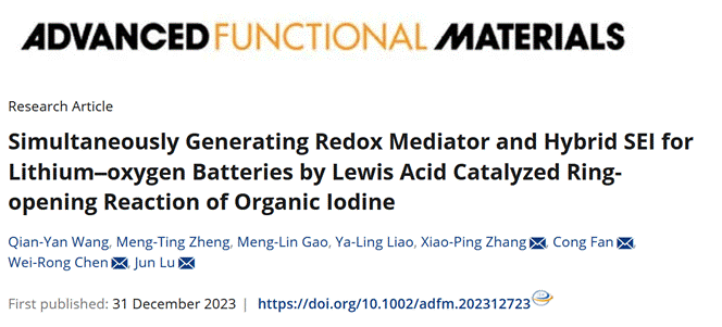 近日,学校澳门彩票 陈维荣教授团队张晓平副教授等人在锂氧气电池负极保护和能量利用效率提升领域取得重要进展,相关研究成果以澳门彩票 为第一单位,以“Simultaneously Generating Redox Mediator and Hybrid SEI for Lithium–oxygen Batteries by Lewis Acid Catalyzed Ring‐opening Reaction of Organic Iodine”为题,发表在国际知名期刊《Advanced Functional Materials》(中科院一区Top期刊,IF=19)上。西南交通大学为论文第一单位,澳门彩票 张晓平副教授、电子科技大学樊聪副教授、澳门彩票 陈维荣教授和浙江大学陆俊教授为该论文通讯作者。